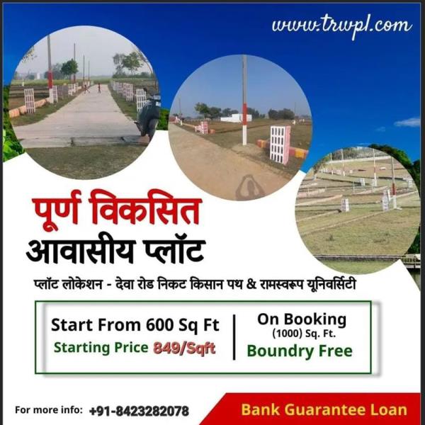 Residential Plot Deva Road Near Ramswaroop University & Kisan Path Only 849/-Rs Per SQFT/ Minimum Plot Size - 600 SQFT 1.5 km Developed Project! Like Salimar Township, Eldeco Township, Patanjali, Jaipuria Vidyalaya, Law College, Pinak Adventure Park, Ramswaroop University, Maheshmati Resort etc. Lucknow Deva road behind Ramsawroop University contact us : 8423282078