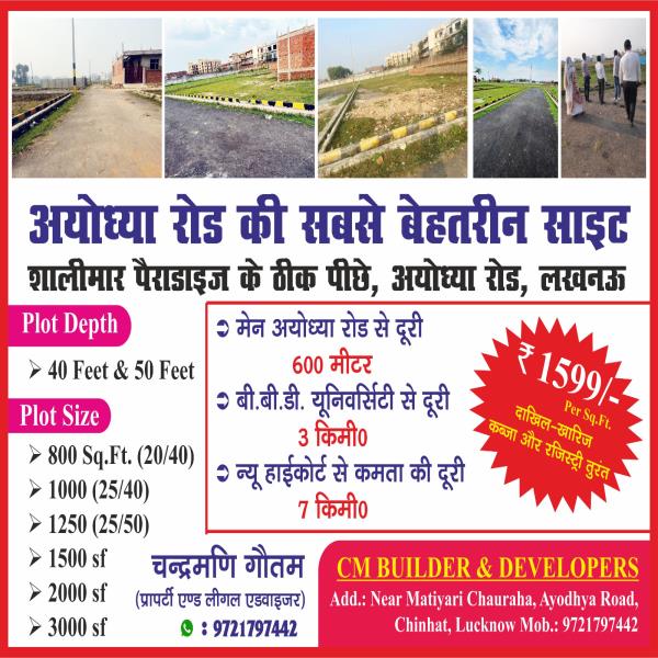 Site location-Near shalimar paradise Price: Rs 1599 instant registration instant capture rate offer limited Hurry up Plot depth 40 feet ,50 feet East face & west faces plots Contact-9721797442CM builder & developers